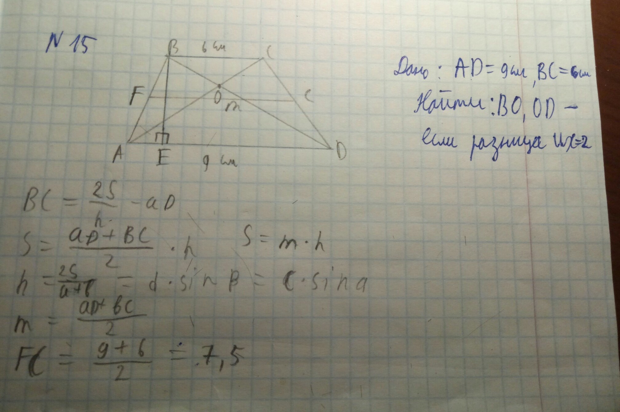 Помогите Срочно! Нужно найти BO и OD в трапеции если их разница равна 2