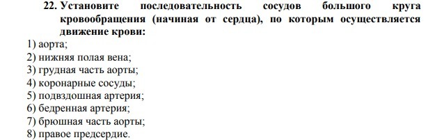 Установите последовательность сосудов большого круга