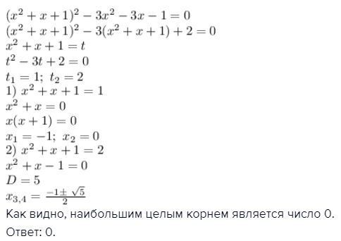 Как видно, наибольшим целым корнем является число 0.