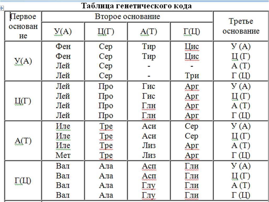 2) При выпадении из молекулы ДНК первого нуклеотида цепь нуклеотидов сдвинется следующим образом :
