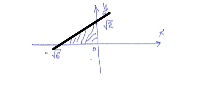 площадь треугольника образованного осями координат и прямой √2x-√6y+2√3=0 равна... 1)2√3; 2)√6 3)√3 4)√3/2 5)√6/2