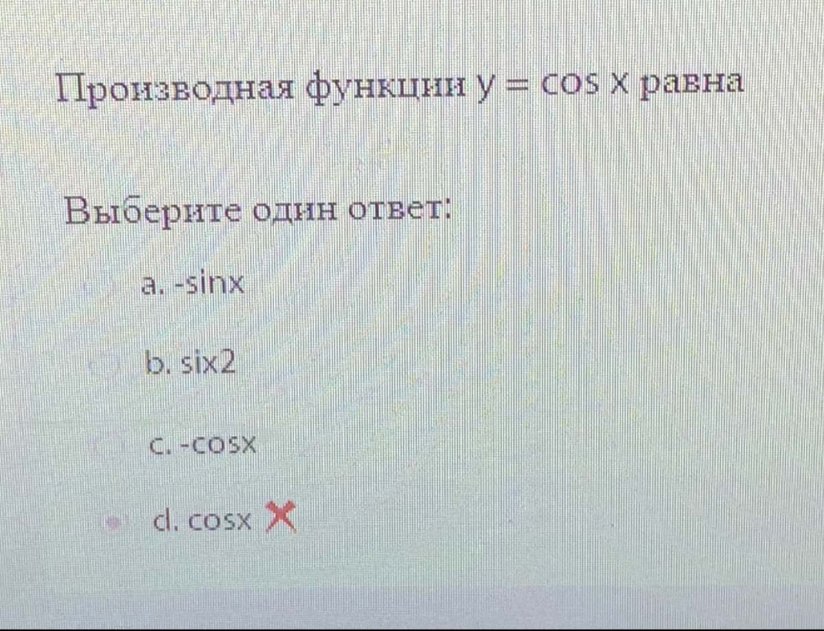 производная от косинуса - это синус со знаком минус (-sinx) , поэтому ответ а