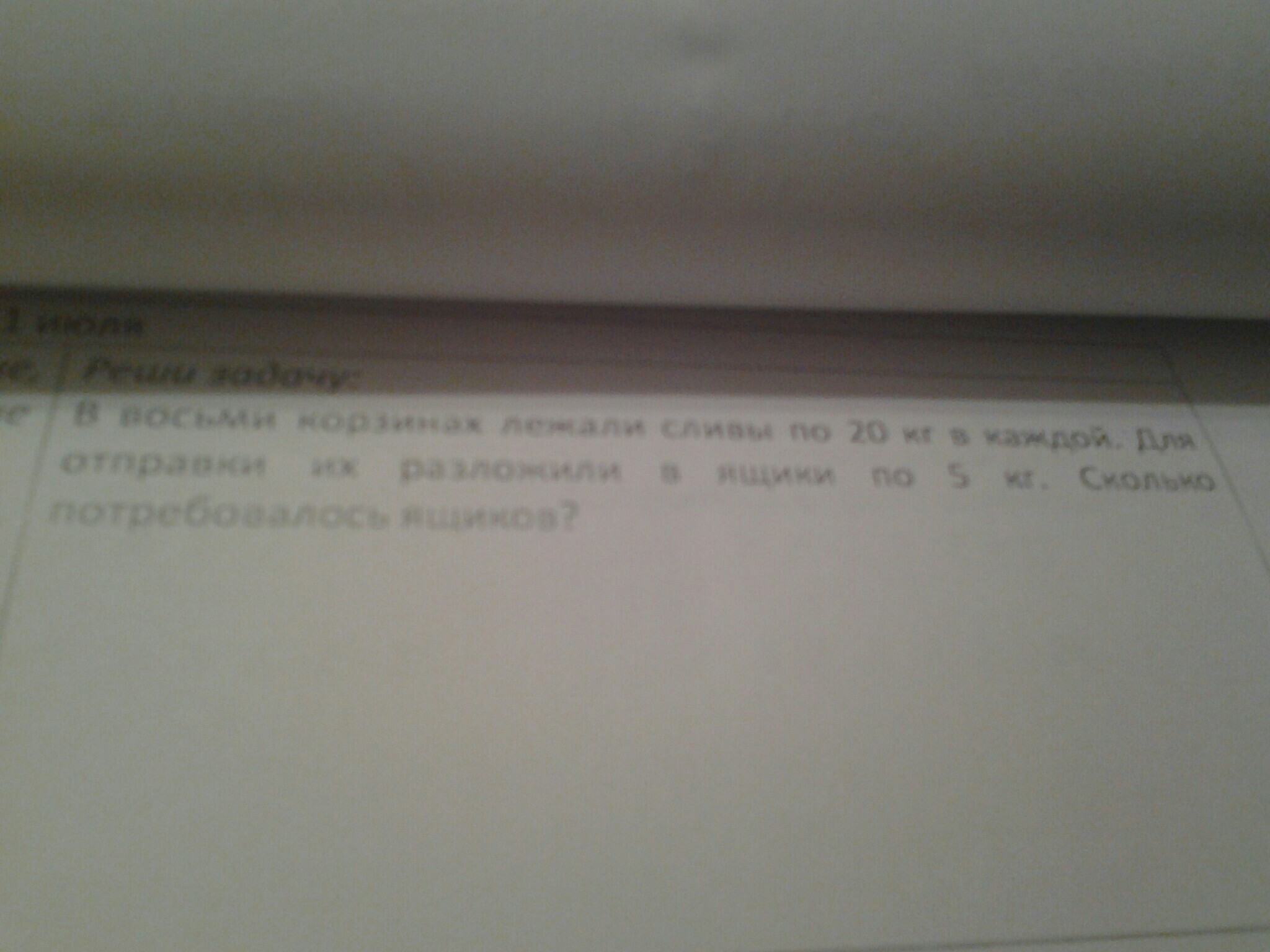 Помогите решить Пж в восьми корзмнах лежали сливы по 20 кг в каждом для отправки их разложили в ящики по 5 кг