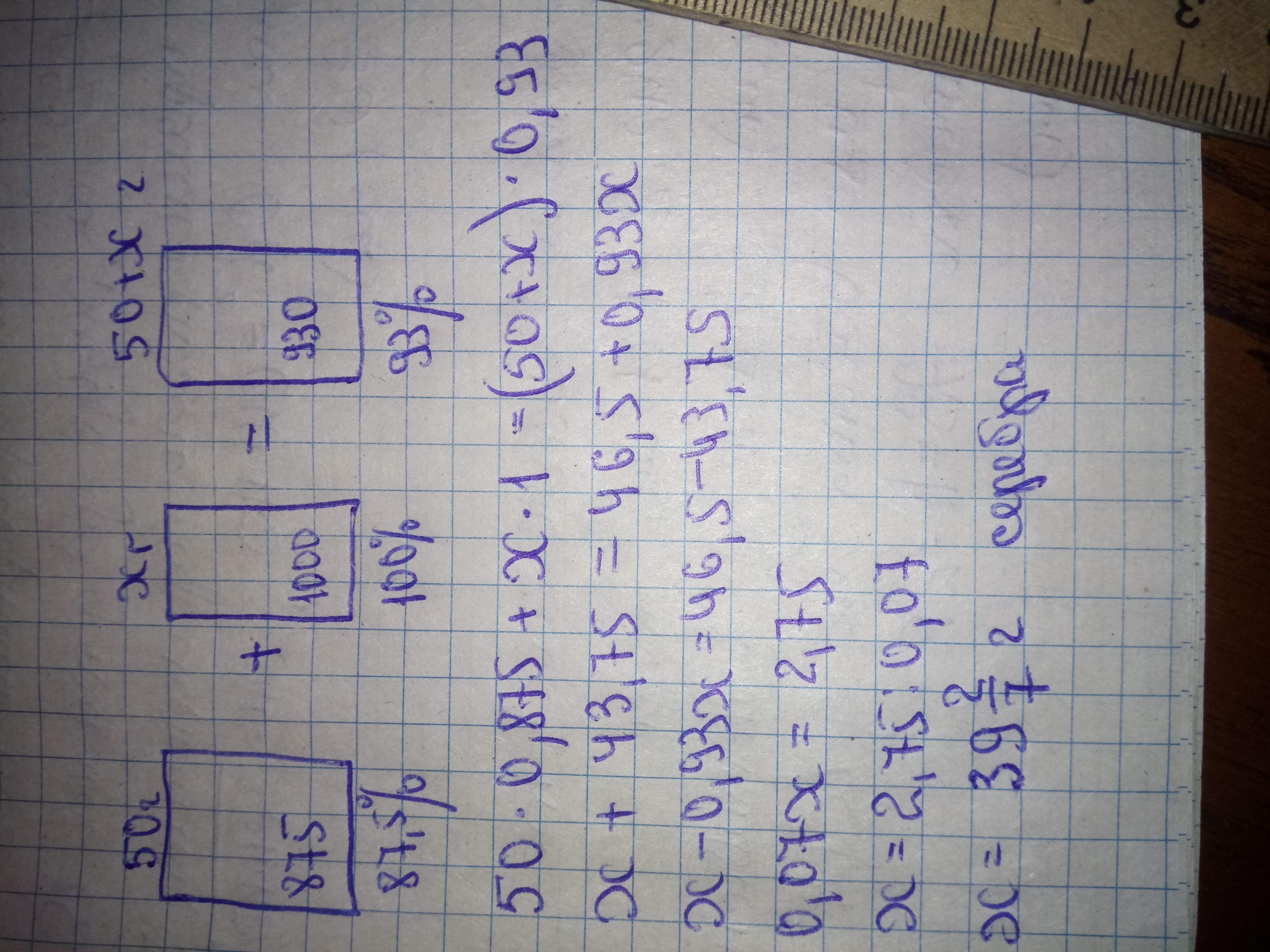 В обоих случаях одна и та же масса примесей, исходя из этого составим уравнение