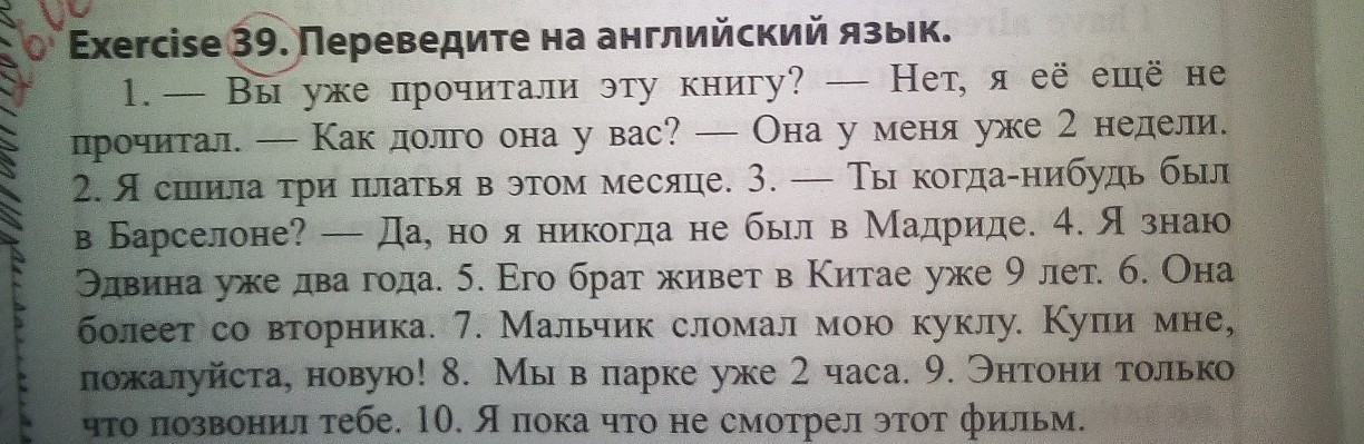 1) -- Have you already read this book? -- No, I haven't read it yet. -- How long have you had it? -- I've had it for 2 weeks.
