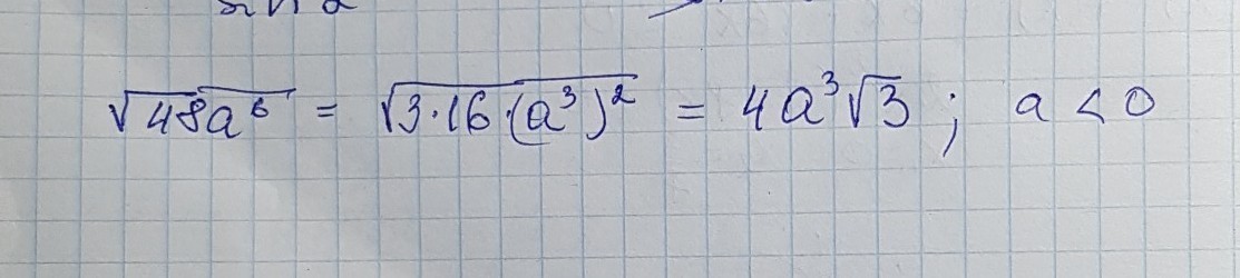 вы написали (48*a^6)^(1/2)=4*a^3*3^(1/2), где a<0, получается отрицательное число равно положительному, что бред.