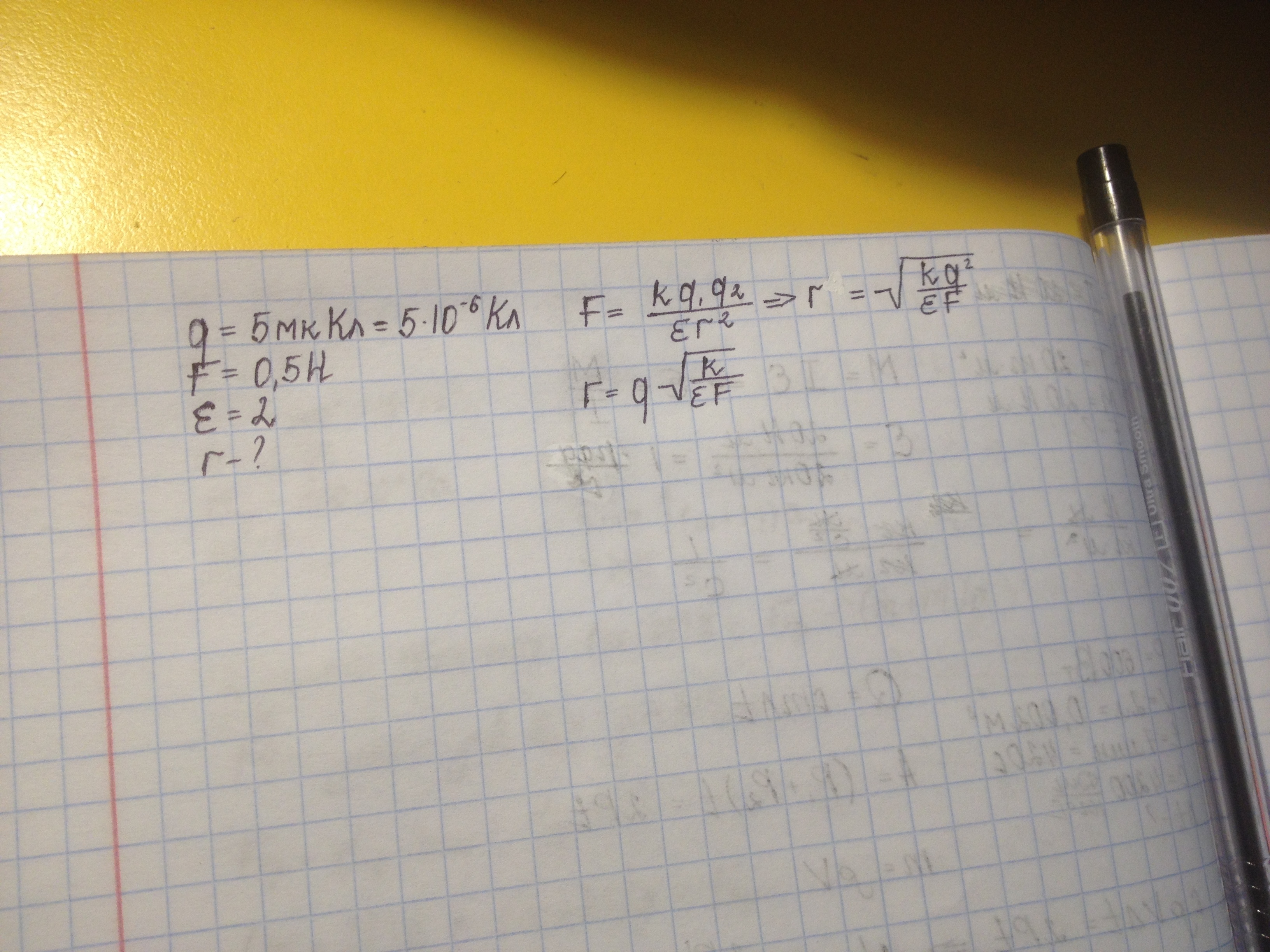 на якій відстані один від одного треба розмістити два точкових заряди по 5 мк Кл, щоб у газі сила взаємодії між ними дорівнювала 0.5 H? Діелектрична проникність газу дорівнює 2.
