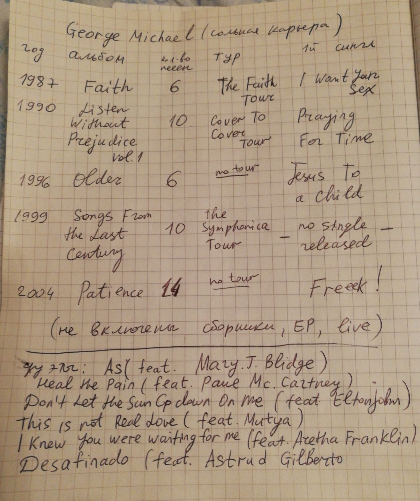 Составь дискографию своего кумира-певца.Начинай с самого первого альбома,заканчивая крайним.Будь внимателен.Укажи дату выпуска,туры по этому альбому,количество песен в одном альбоме и самый первый сингл альбома.Если у певца/певицы дуэт,то укажи с кем он/она пела.