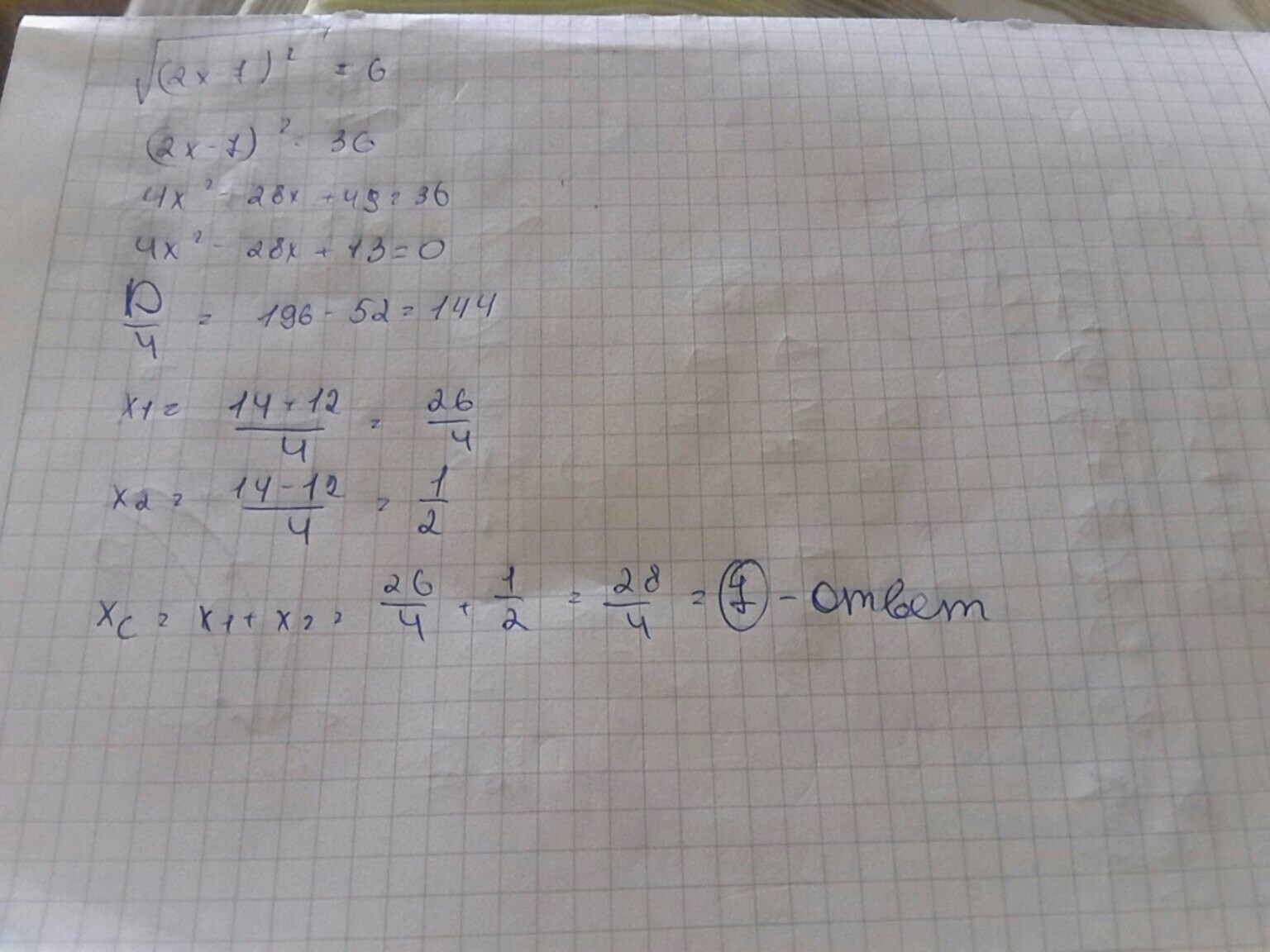 x1+x2 = 13/2 + 1/2 = 14/2 = 7.