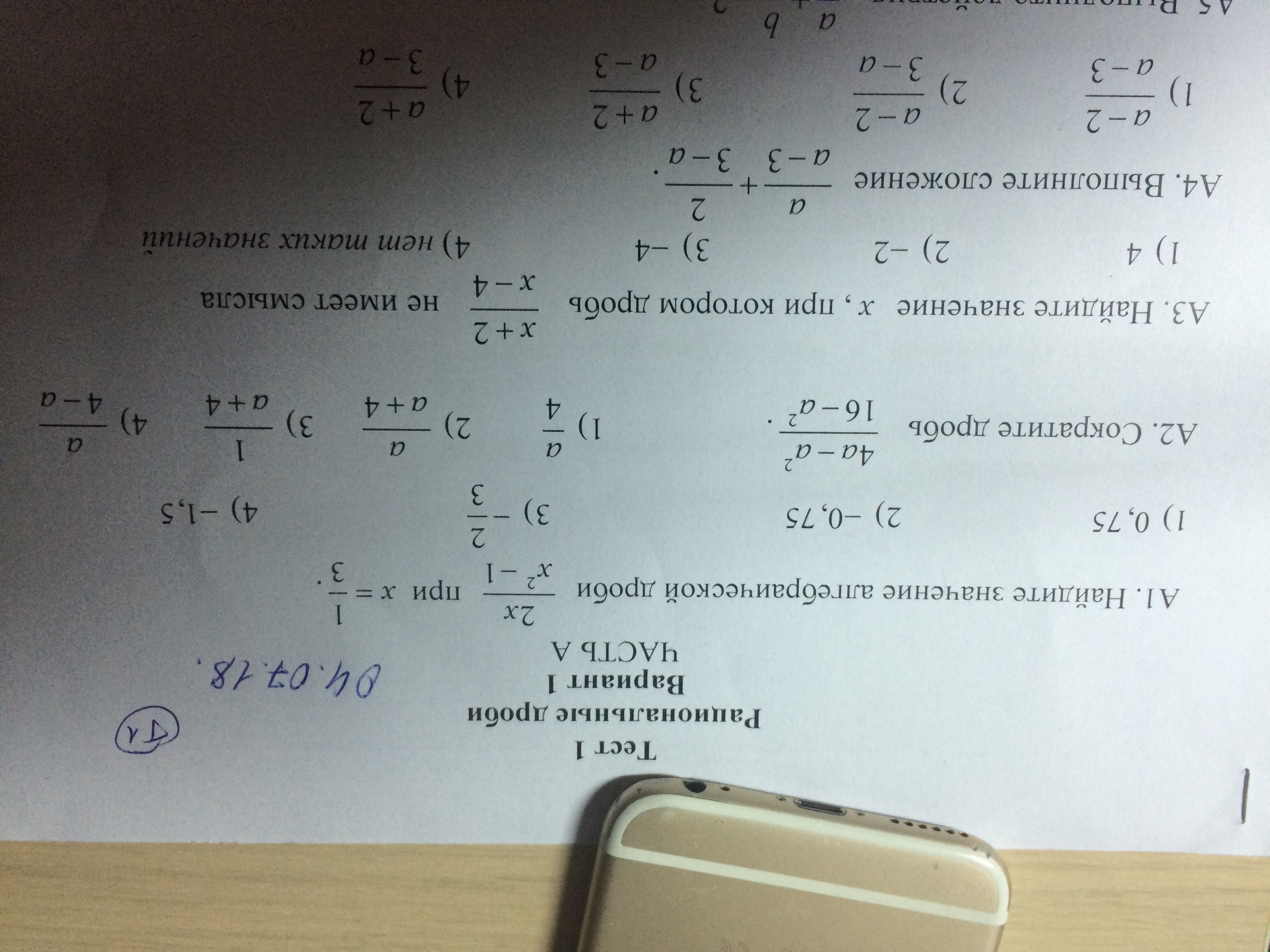 А4. =а/(а-3) - 2/(а-3)= (а-2)/(а-3) отв 1