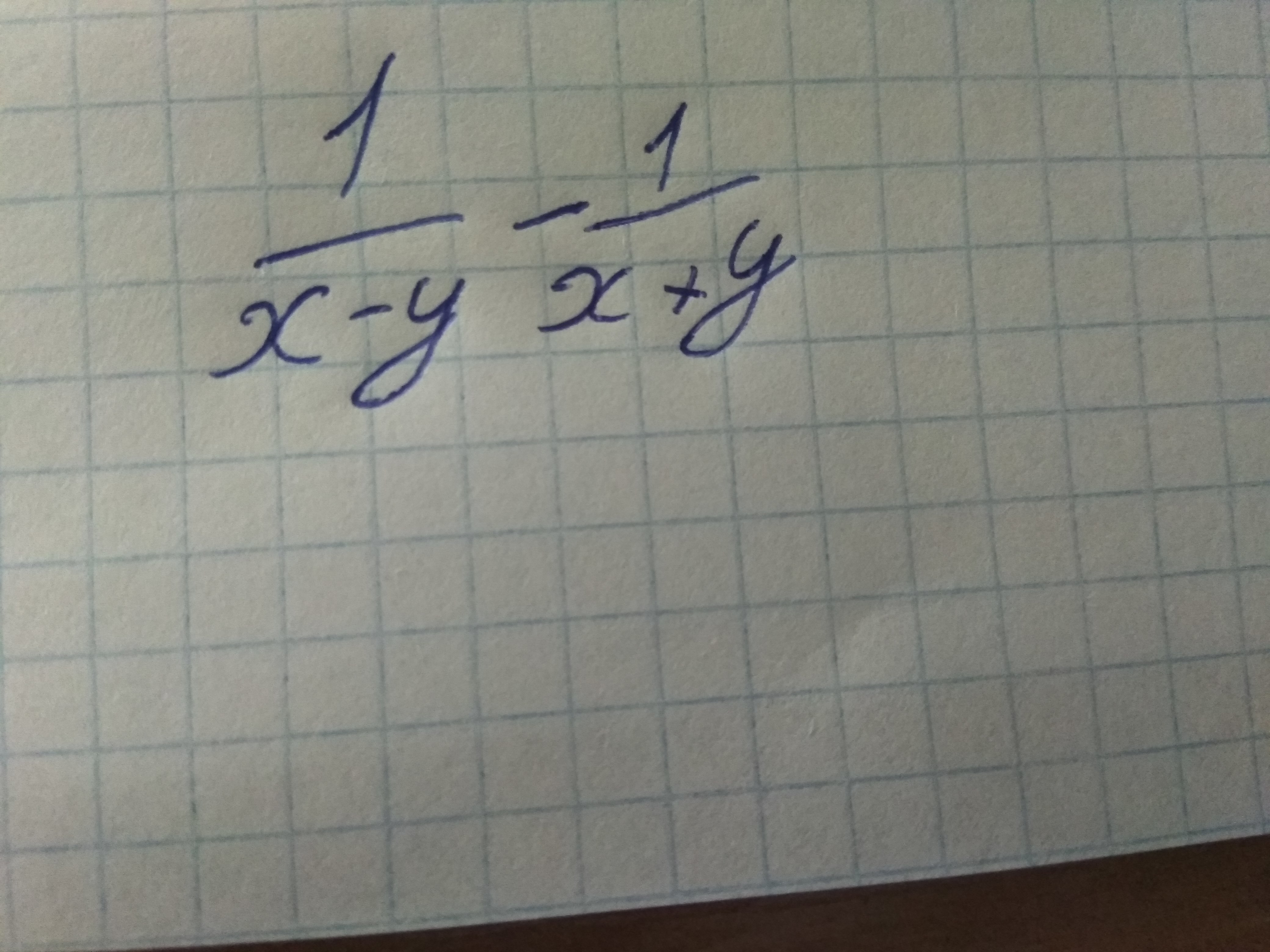 displaystyle frac{1}{x-y}-frac{1}{x+y}=frac{x+y-(x-y)}{(x-y)(x+y)}=frac{2y}{x^{2}-y^{2}};