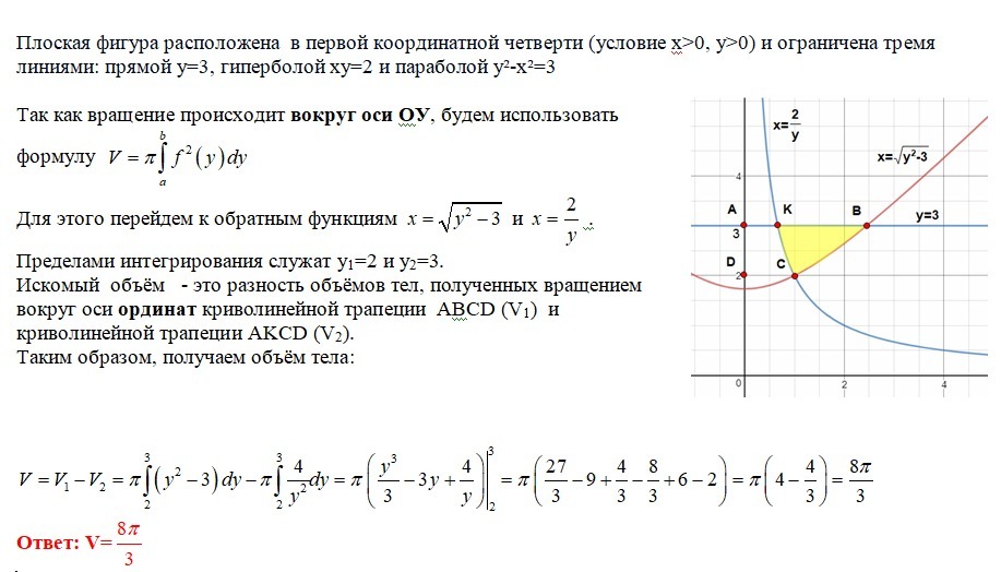 Найти объем тела полученного вращением вокруг оси oy фигуры ограниченной линиями