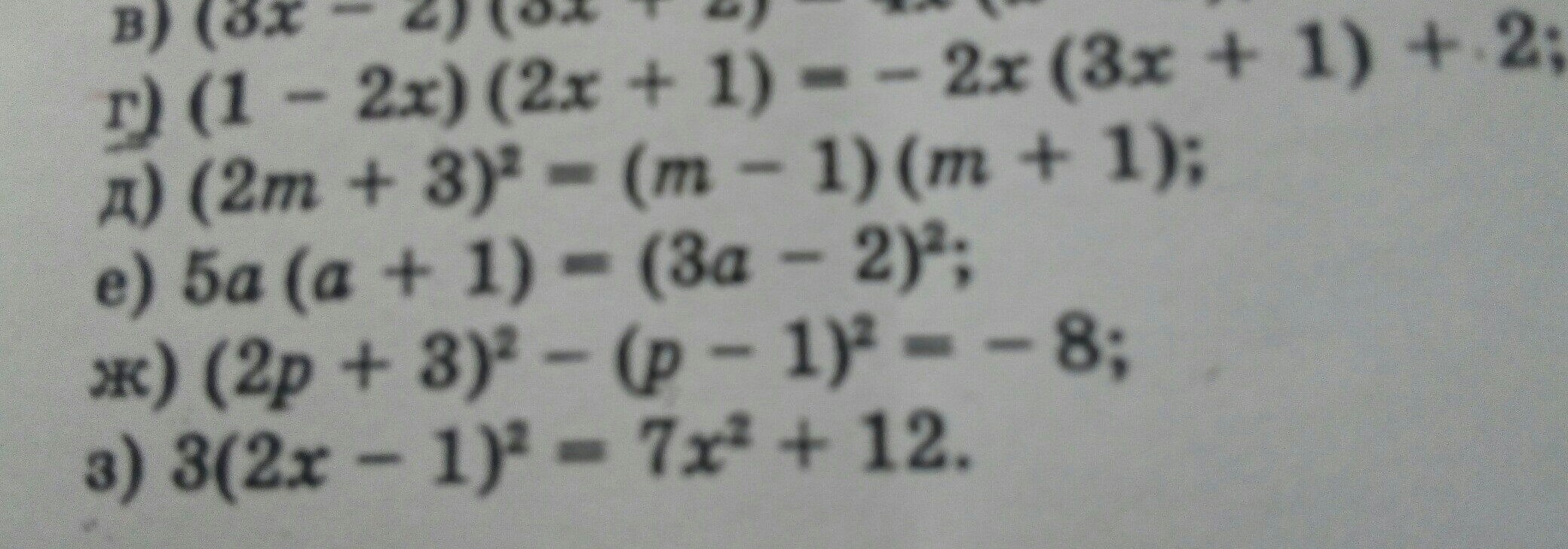 г) (1-2х)(2х+1)=-2х(3х+1)+2