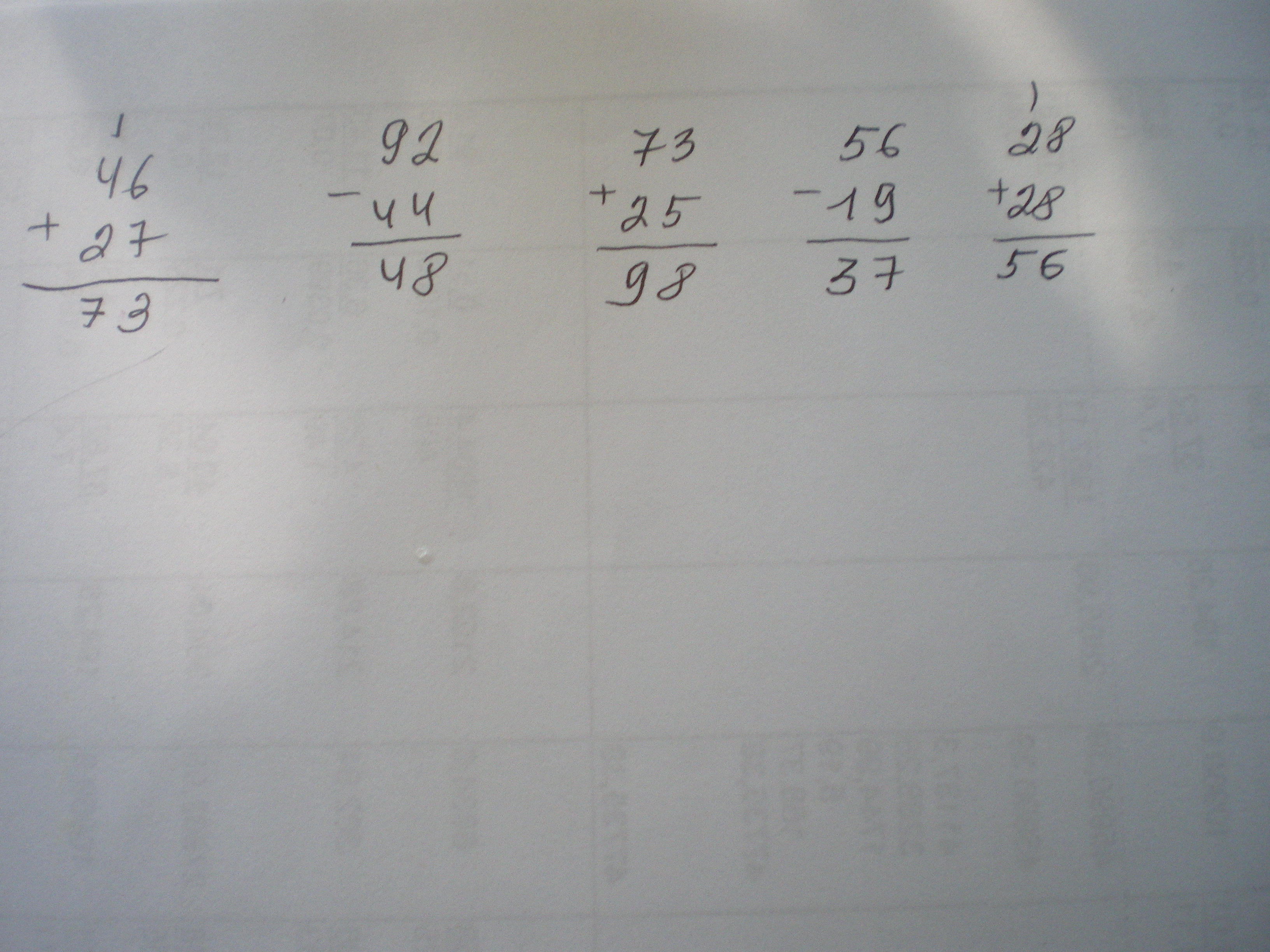73 + 25 56 - 19 28 + 28