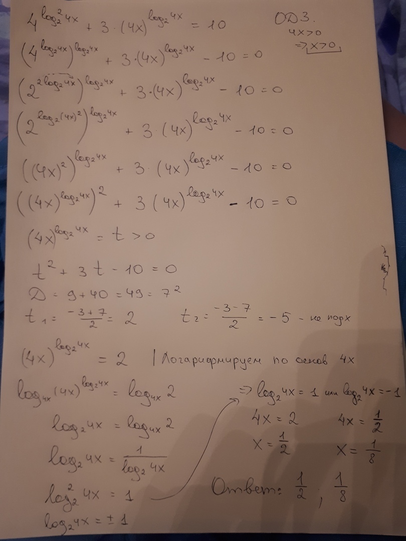 Помогите с примером. Не получается разложить второй логарифм, что делать? Или использовать замену?буду рада полному решению. Заранее спасибочки)))