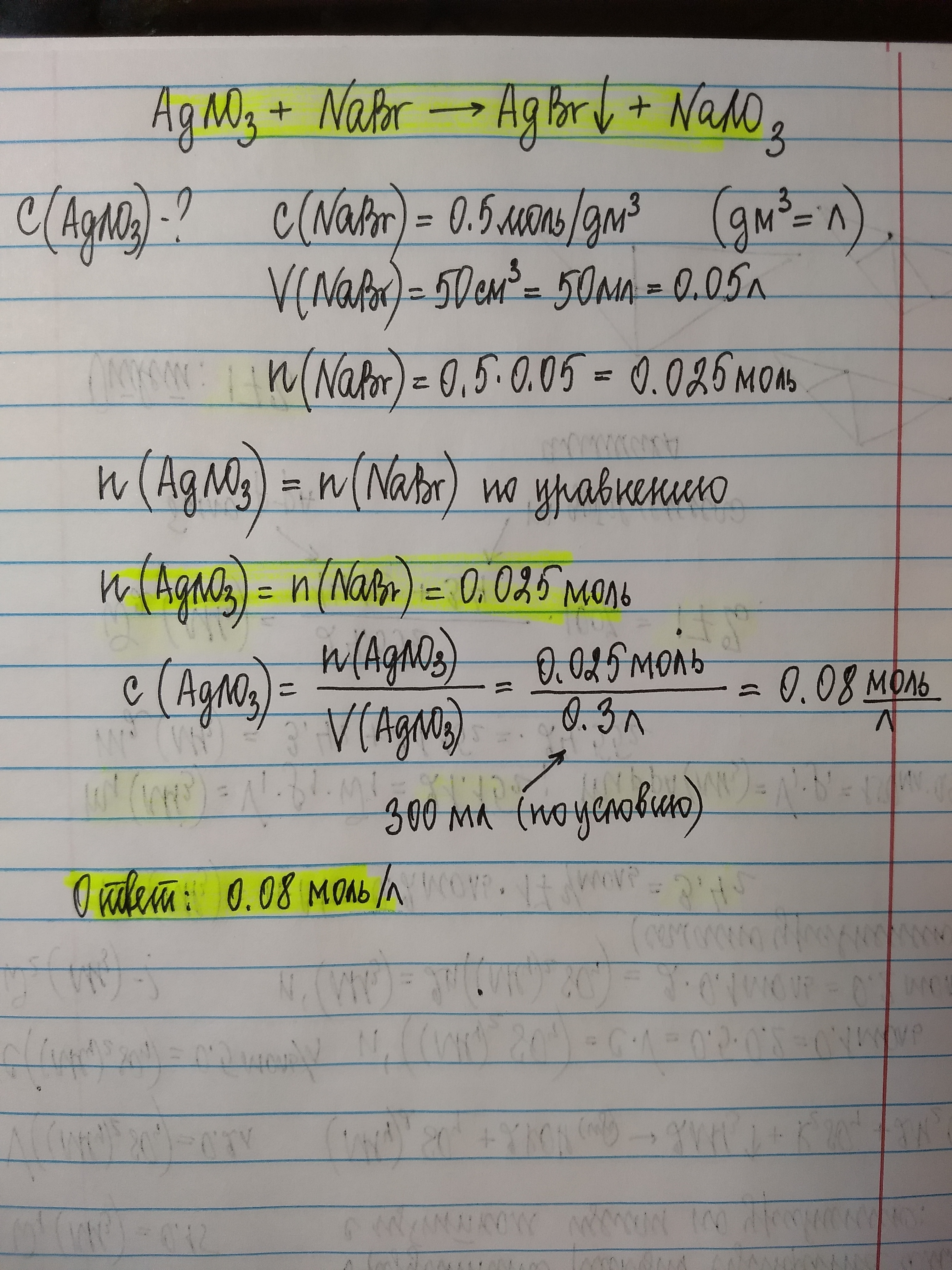 ля осаждения всего серебра содержащийся в 300см3 розчигу аgno3 понадобится 50см3 раствора nabr с молярной концентрацией 0,5 моль / дм. определите молярную концентрацию раствора agno3