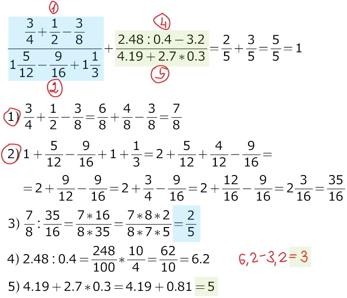 1. ³/₄+¹/₂-³/₈=0,75+0,5-0,375=0,875