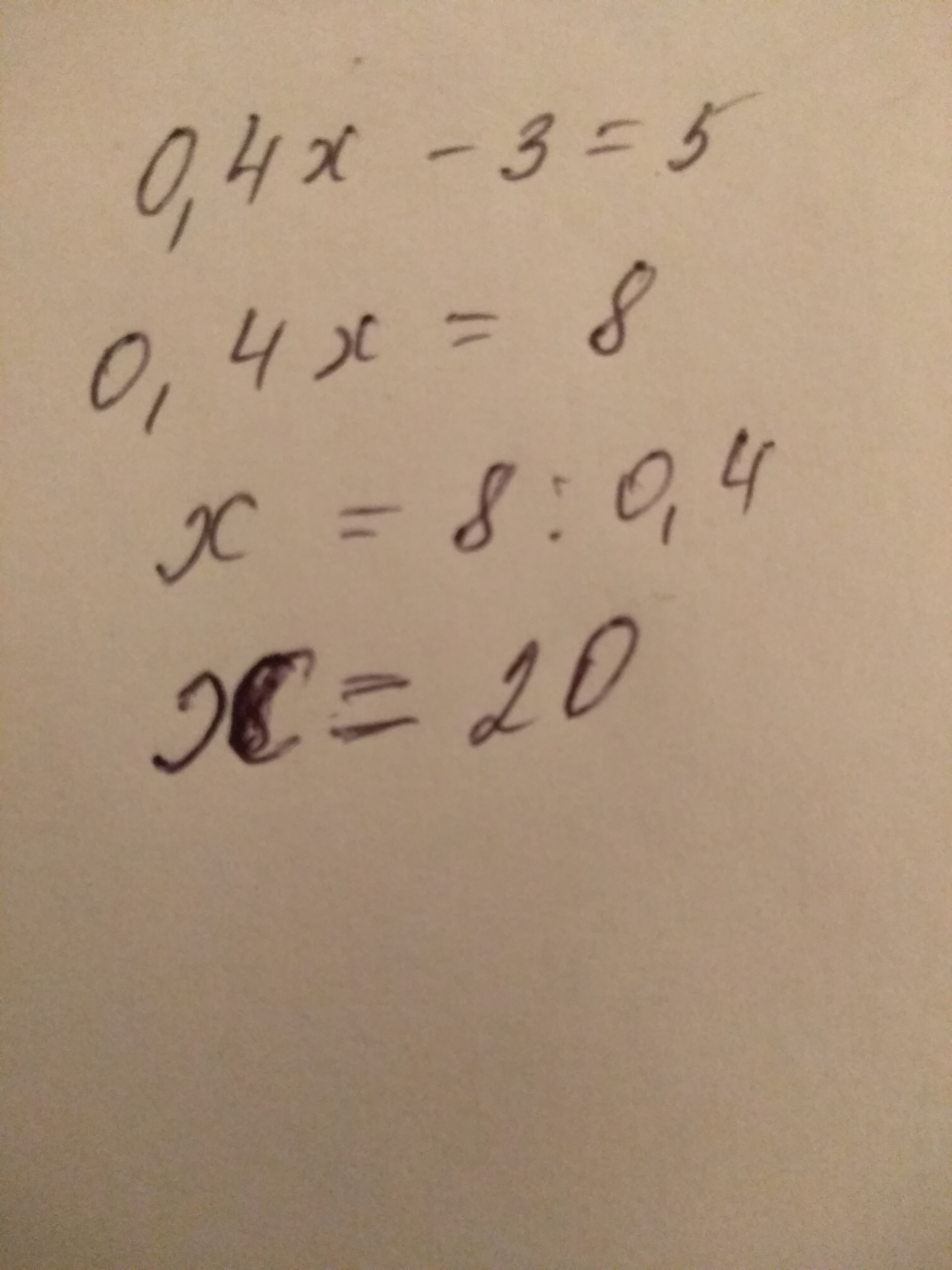 0.4х = 5 + 3