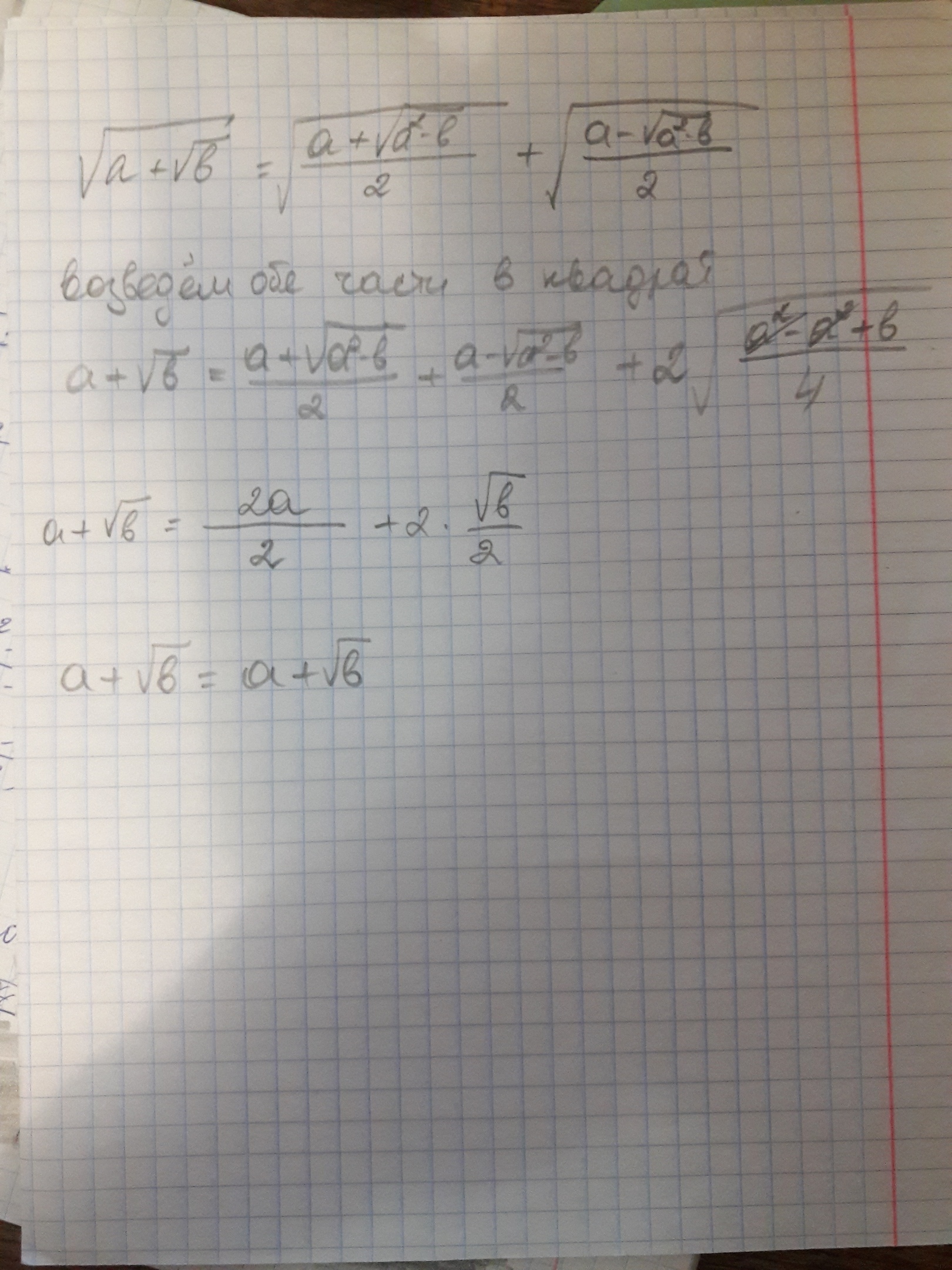 Возьмем правую части в квадрат, то есть: