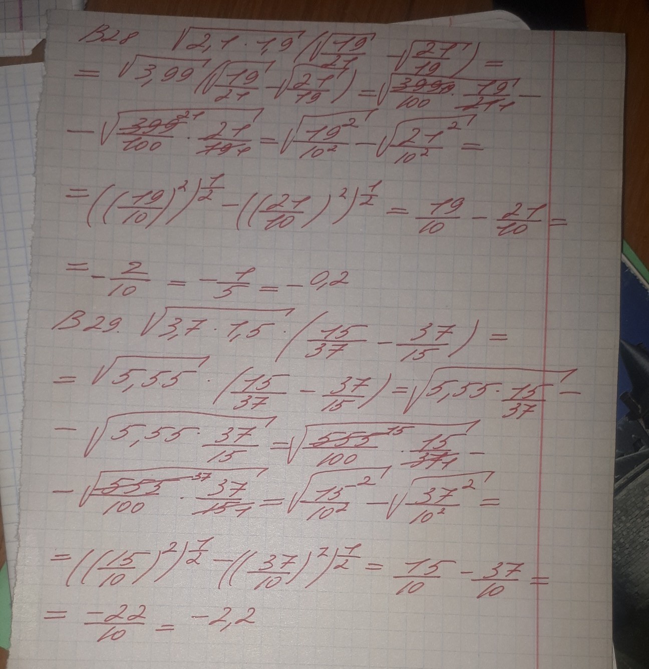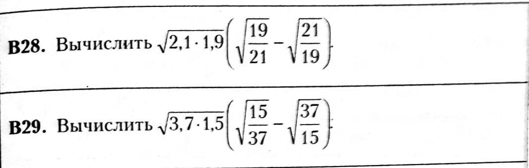 работаем со скобками: корень из дроби можно записать как корень из числителя делить на корень из знаменателя, приведем к общему знаменателю, √19*√19=19, √21*√21=21