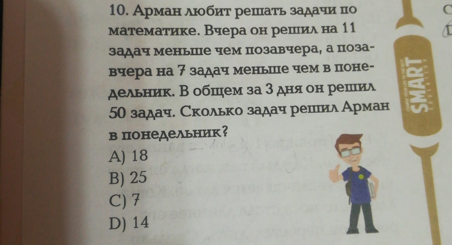 x = 25 -- столько задач решил в понедельник.
