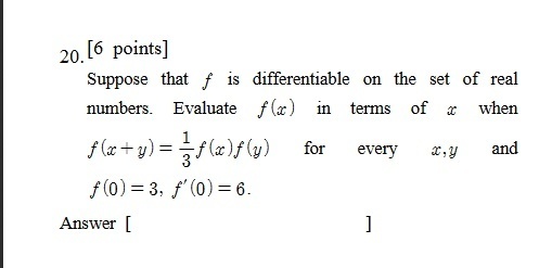 f(x) f(y) для всех x, y и f(0)=3, f ' (0)=6.