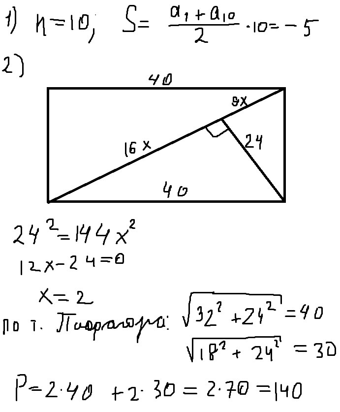 1)Найдите сумму десяти первых членов арифметической прогрессии