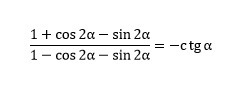 1-cos(2α)-sin(2α)=sin²α+cos²α-cos²α+sin²α-2*sinα*cosα=2*sin²α-2*sinα*cosα=