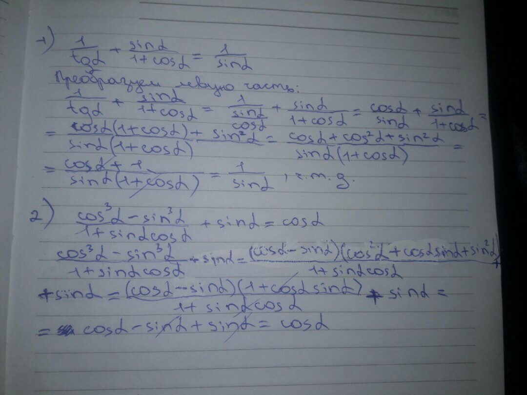 1) cos³α-sin³α=(cosα-sinα)*(cos²α+sinα+cosα+sin²α)=(cosα-sinα)*(1+sinα*cosα).2) (cosα-sinα)*(1+sinα*cosα)/(1+sinα*cosα)=cosα-sinα.