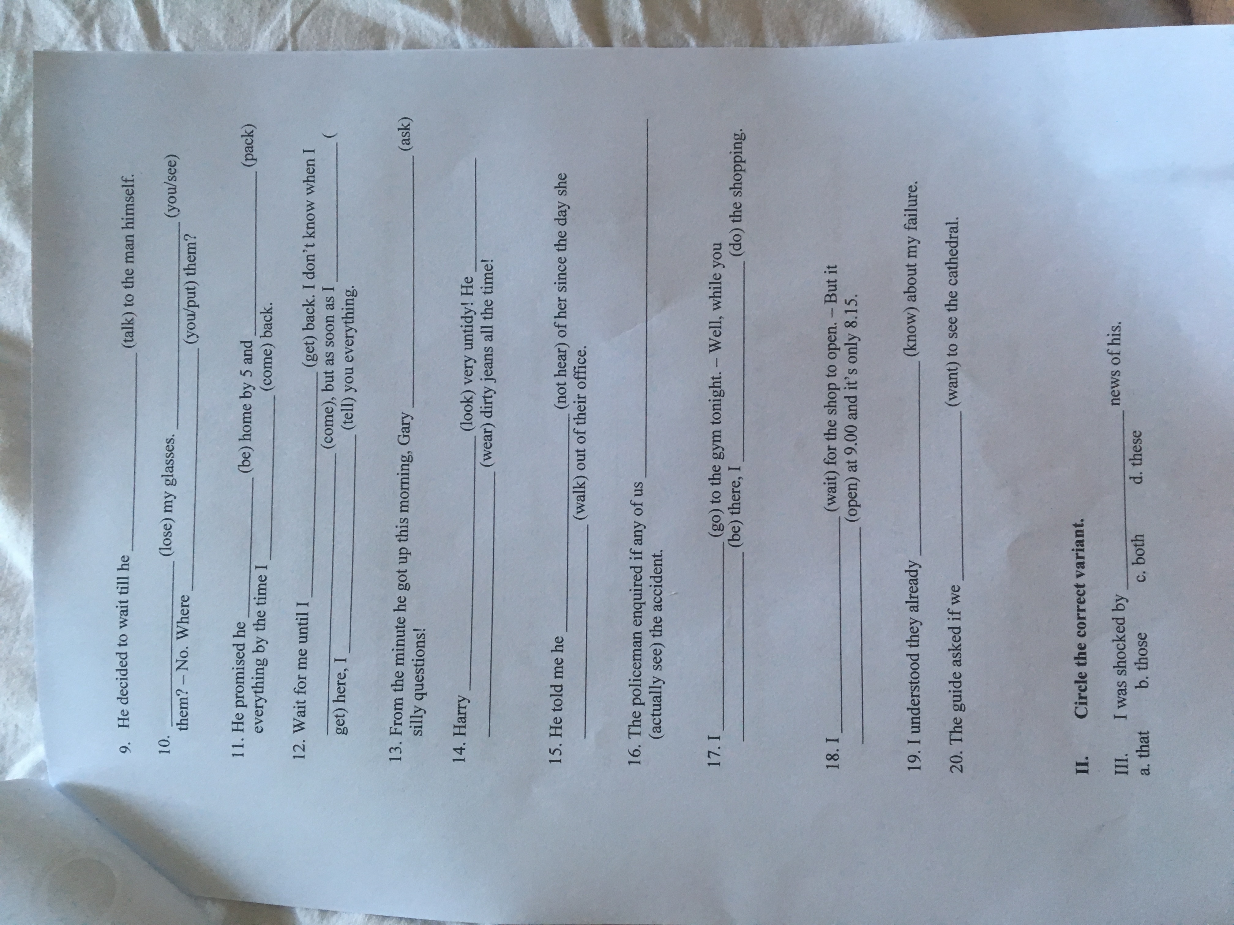 10. I have lost, Have you seen, did you put