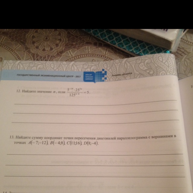 Точкой пересечения диагонали делятся пополам, значит, нам нужно найти середину AC или BD.
