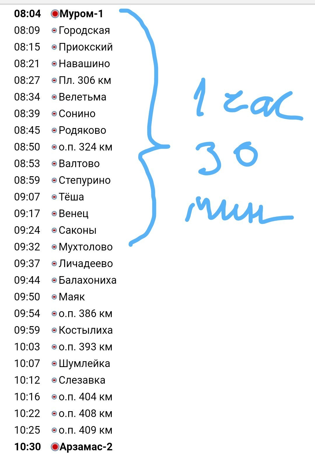 Электропоезд выехала из Муром в сторону Арзамаса за 1час 30 минут какие станций он успеет проехать за это время. Помогите очень надо узнать