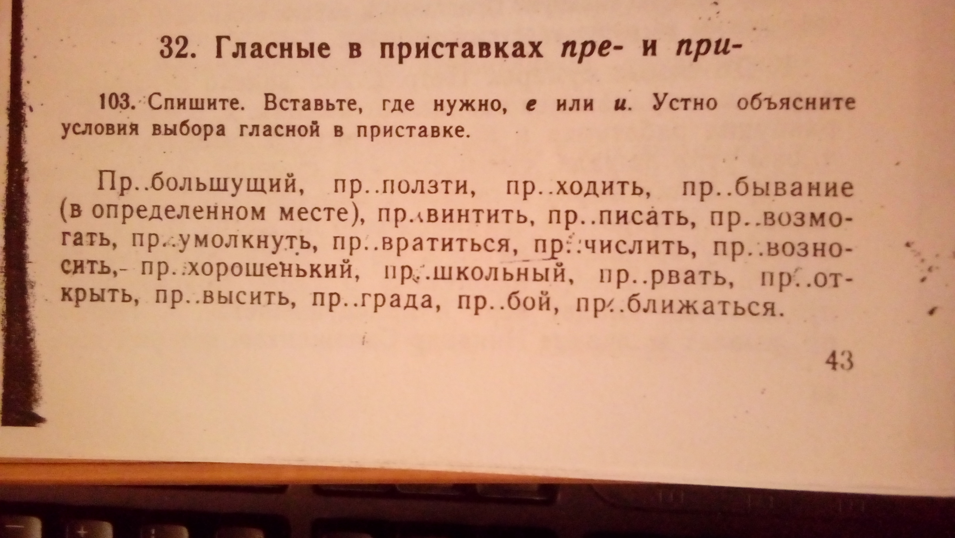 ПрЕбольшущий, прИползти, прИходить, прЕбывание (в определённом месте), прИвинтить, прИписать, прЕвозмогать, прИумолкнуть, прЕвратиться, прИчислить, прЕвозносить, прЕхорошенький, прИшкольный, прЕрвать, прИоткрыть, прЕвысить, прЕграда, прИбой, прИближаться.