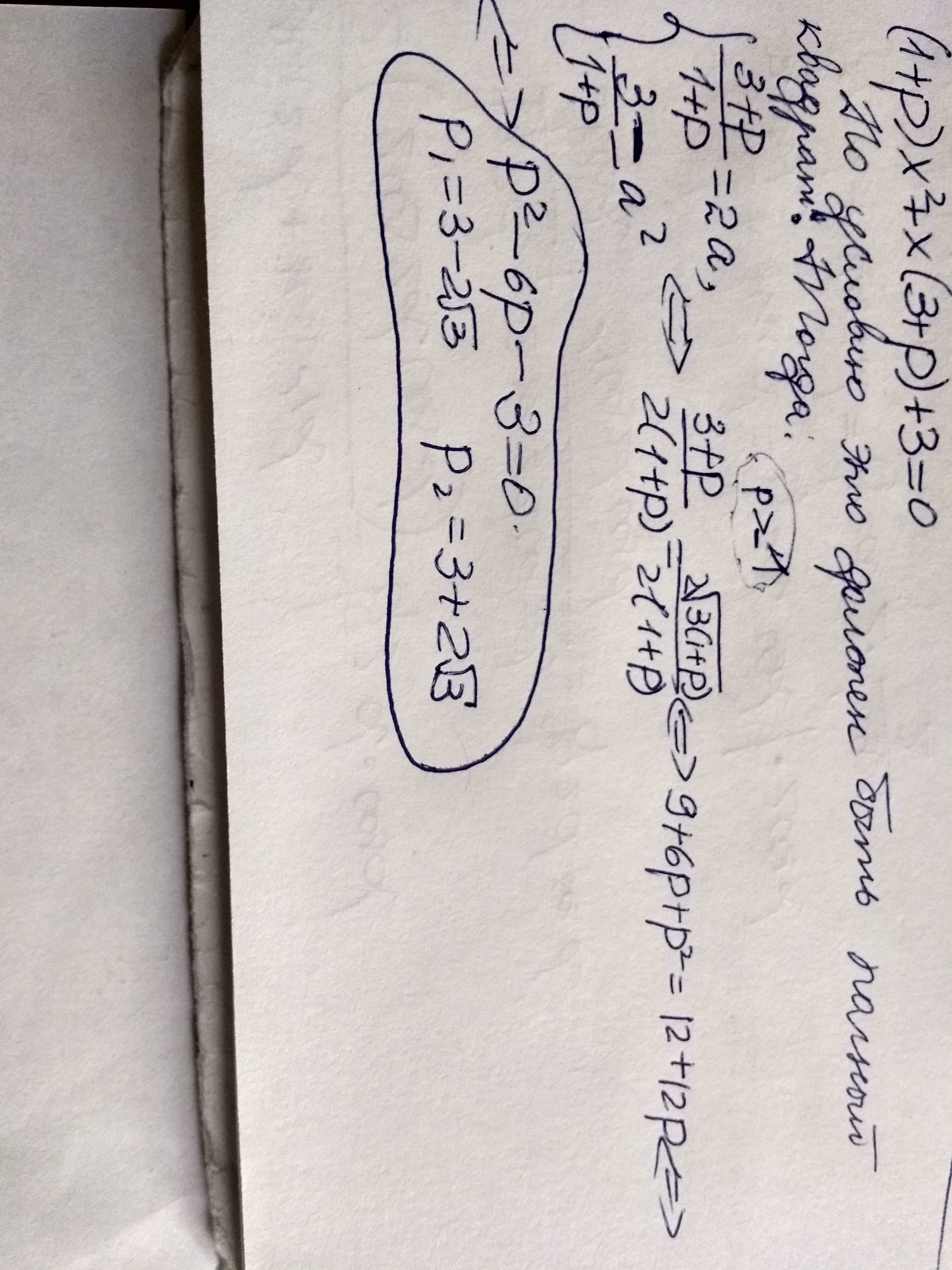 При якому значенні параметра ρ рівняння x^2+3x+3+ρ(x^2+x)=0 має рівні корені? Скласти рівняння, коренями якого є вказані значення ρ.