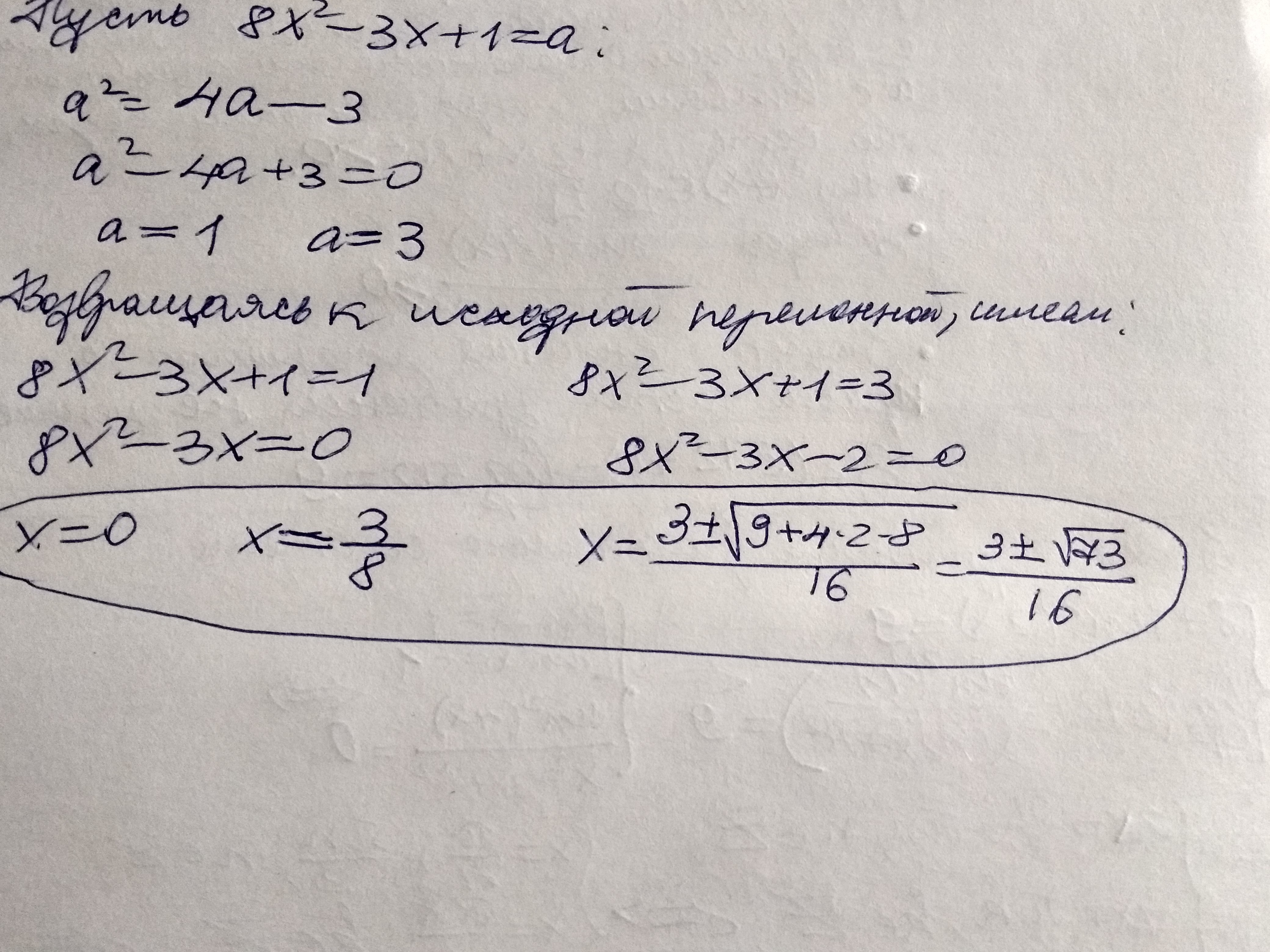 ответ: x 1 = ( 3 - sqrt(73)) / 16 , x2 =0 , x3=3/8 , x4= (3+sqrt(73))/16