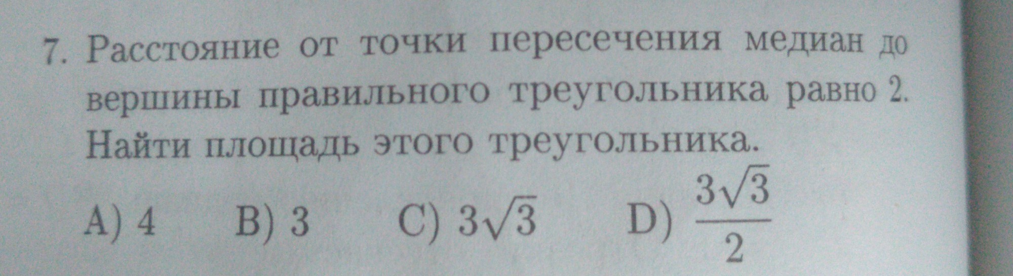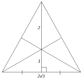 Медианы в равностороннем треугольнике являются высотами и биссектрисами (h=m=3) и равны √3/2 a (a - сторона треугольника).