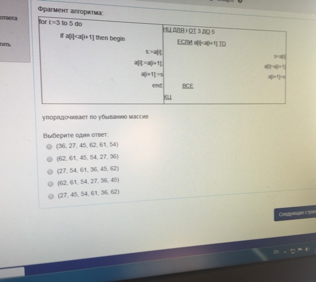 Однако, чтоб Вам было проще понять, как это работает, то предположим, что массив был таким: (36, 27, 45, 54, 62, 61).