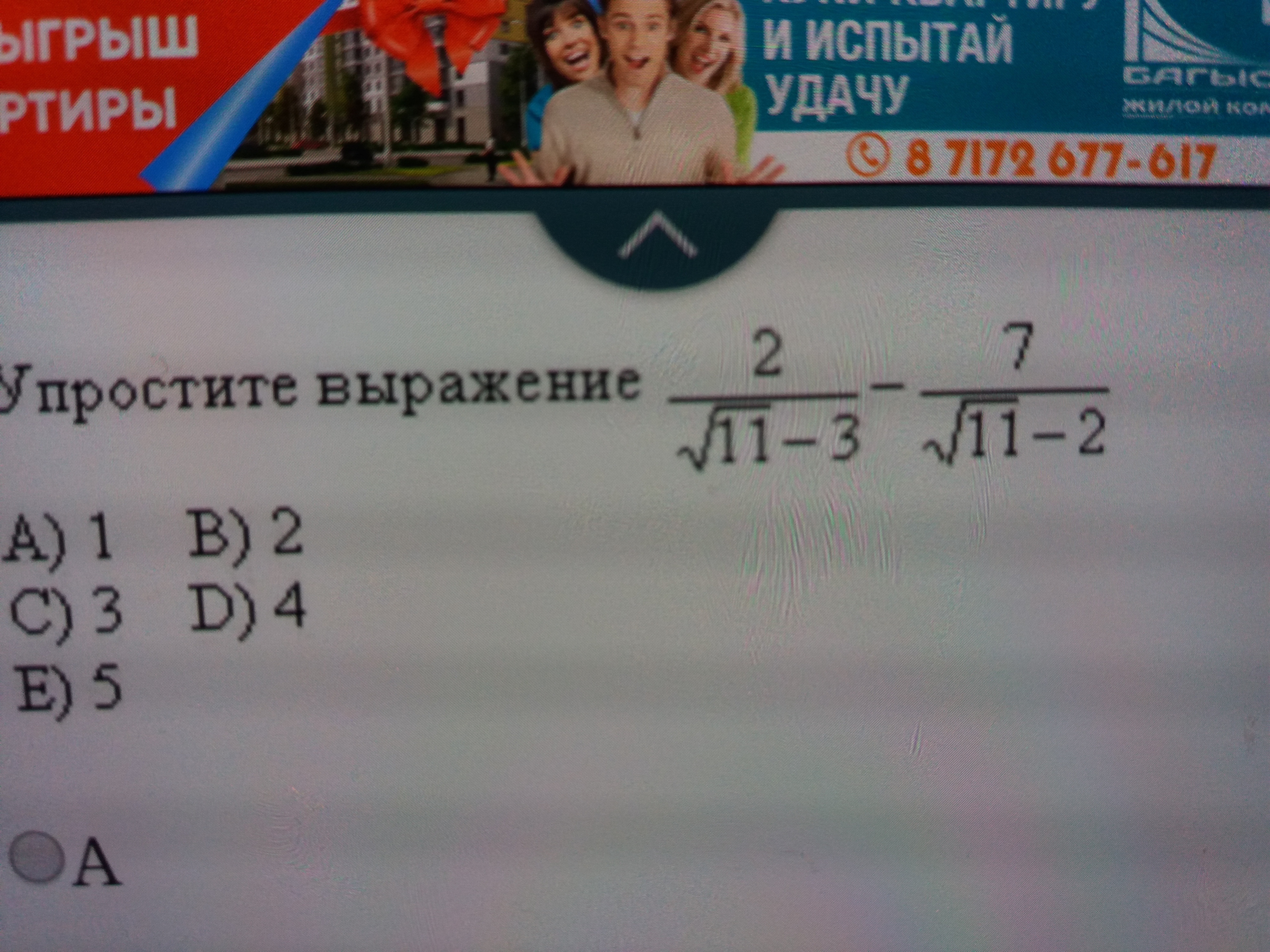 решение на фото, ответ А) 1