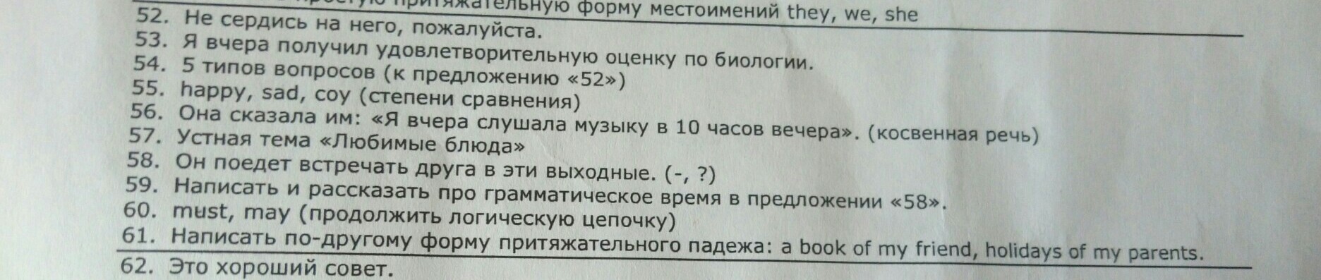 2. Yesterday i got a satisfactory mark at the biology lesson.