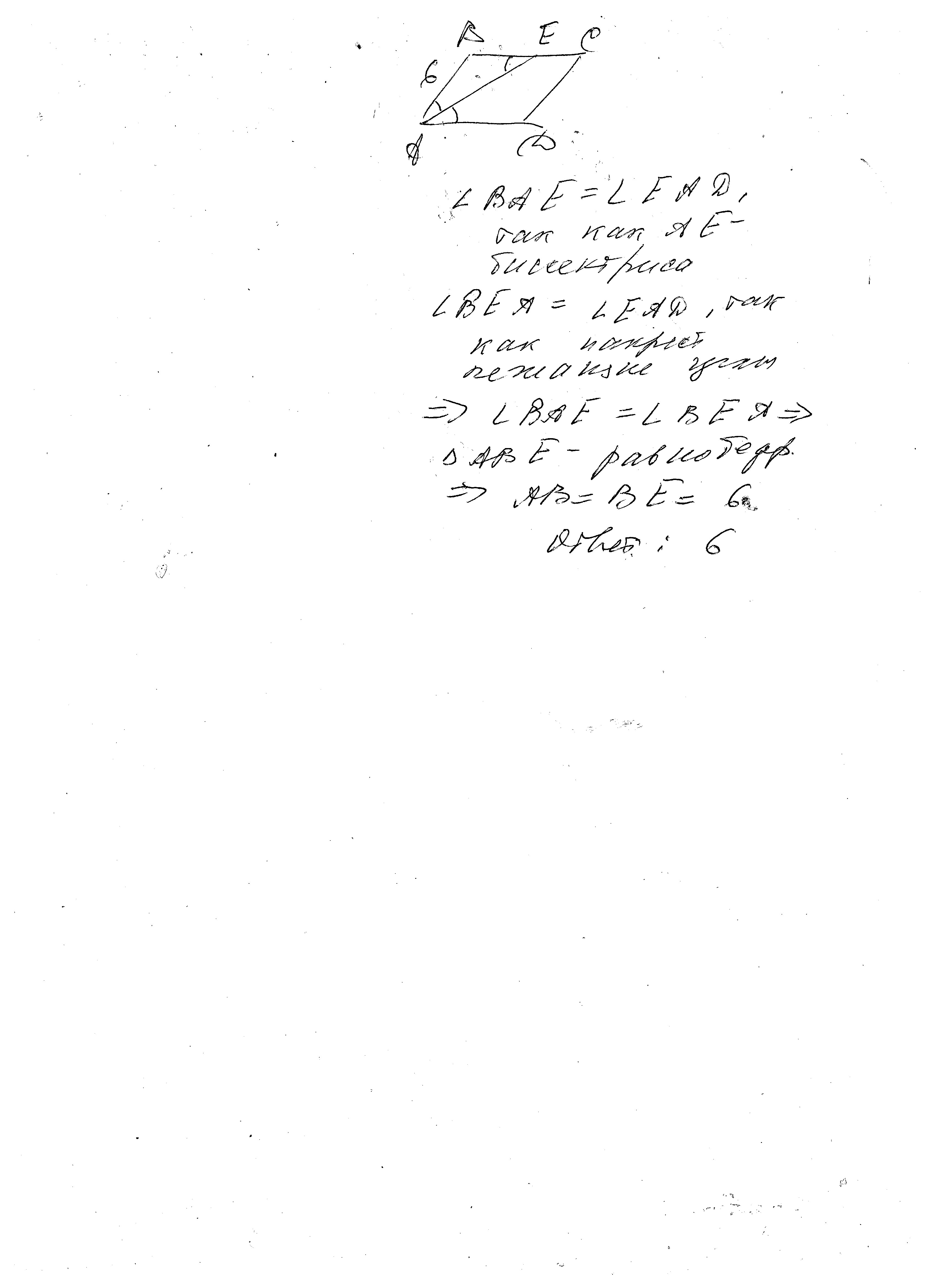 Дан параллелограмм ABCD AE биссектриса угла А АВ= 6 . найти ВЕ