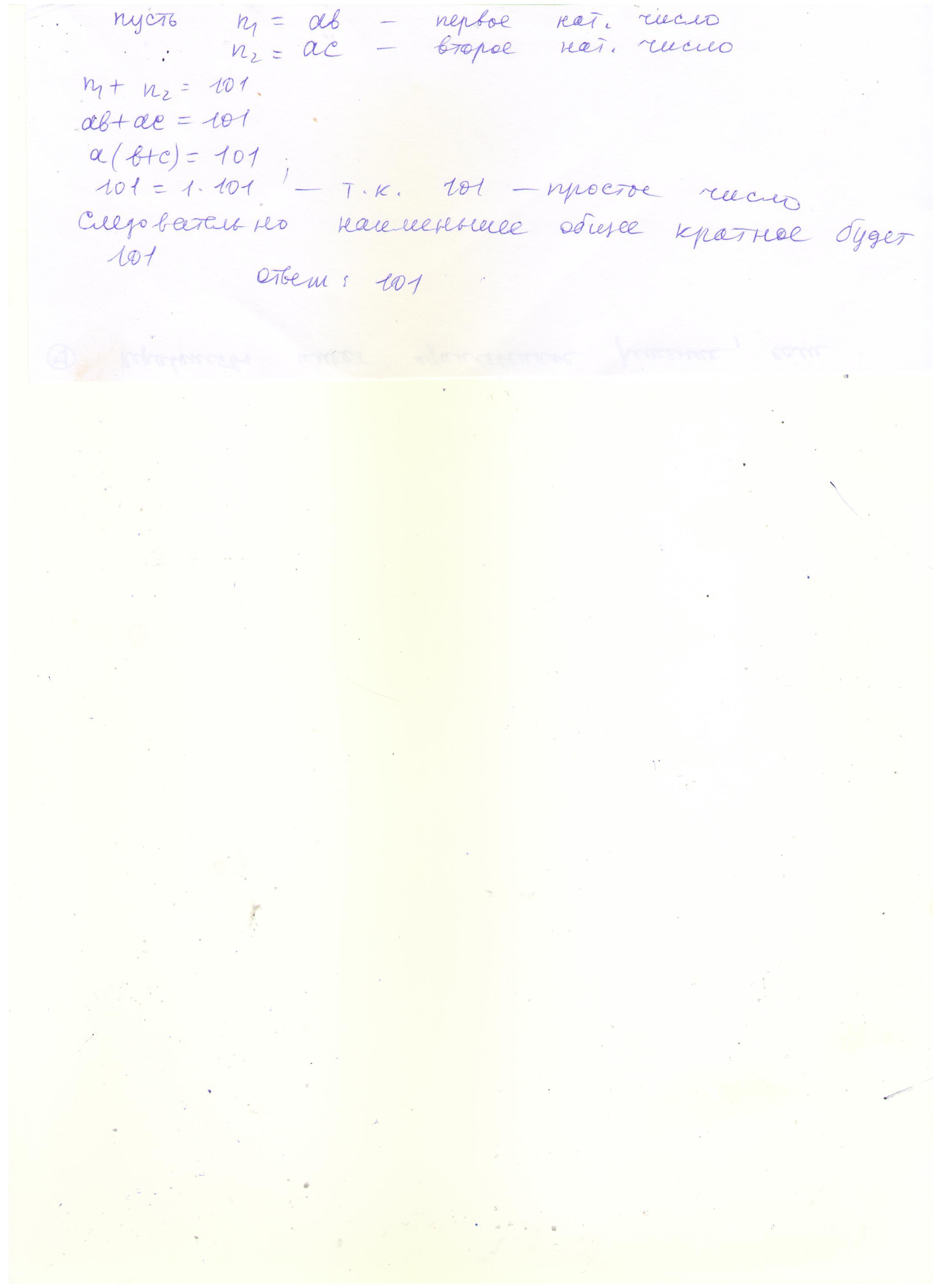 Сумма 2 натуральных чисел равна 101. Какое наименьшее значение может принимать их наименьшее общее кратное.