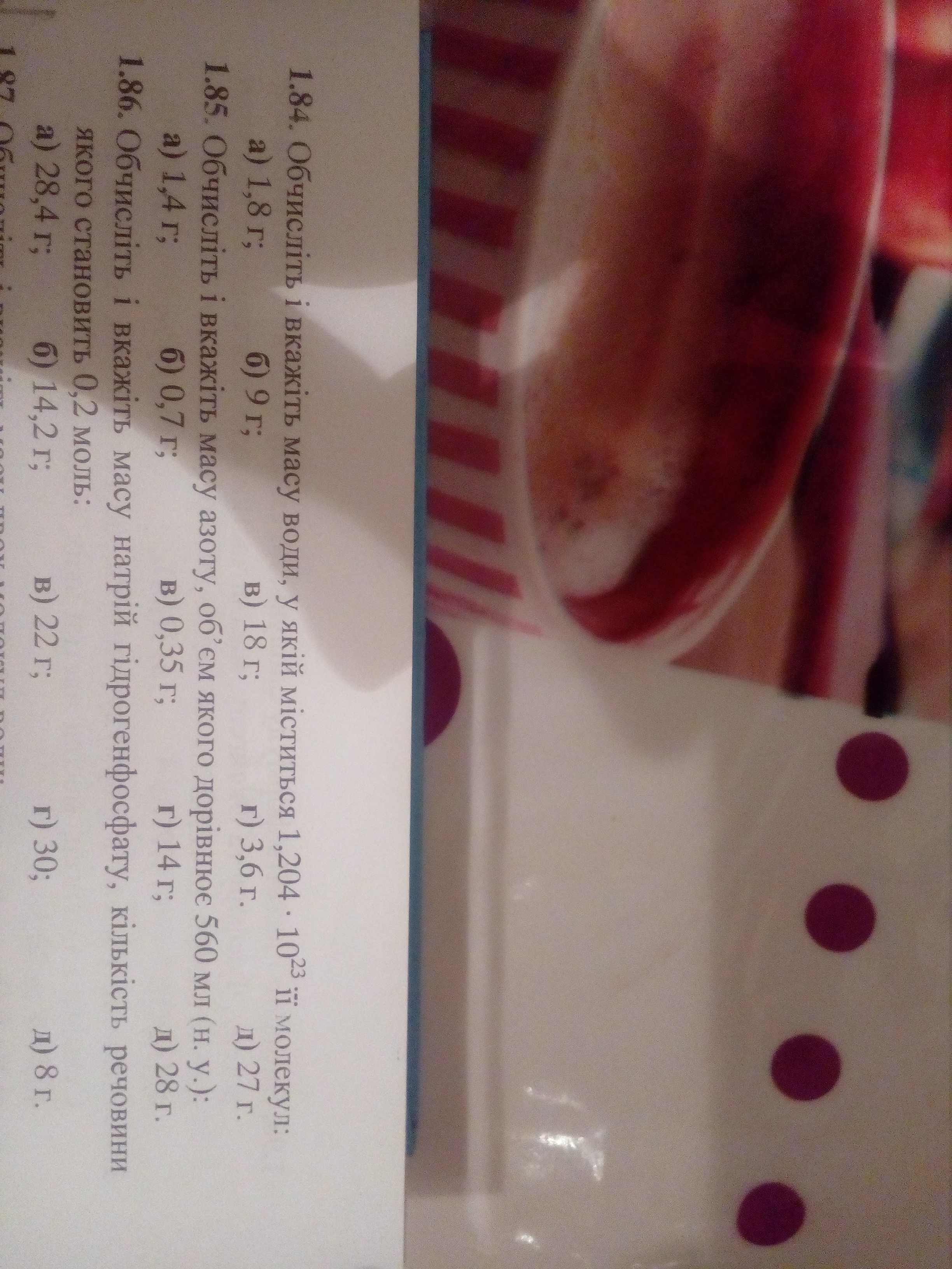 1.84) M(H2O) = 2 + 16 = 18 г/моль