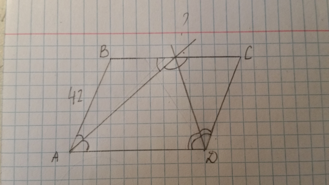 т.к AK- , бисектрисса, ∠BAK=∠KAD, значит∠CKA=∠BAK=∠BKA=∠KAD ⇒ Δ ABK - р/б. ⇒ AB=BK=42.