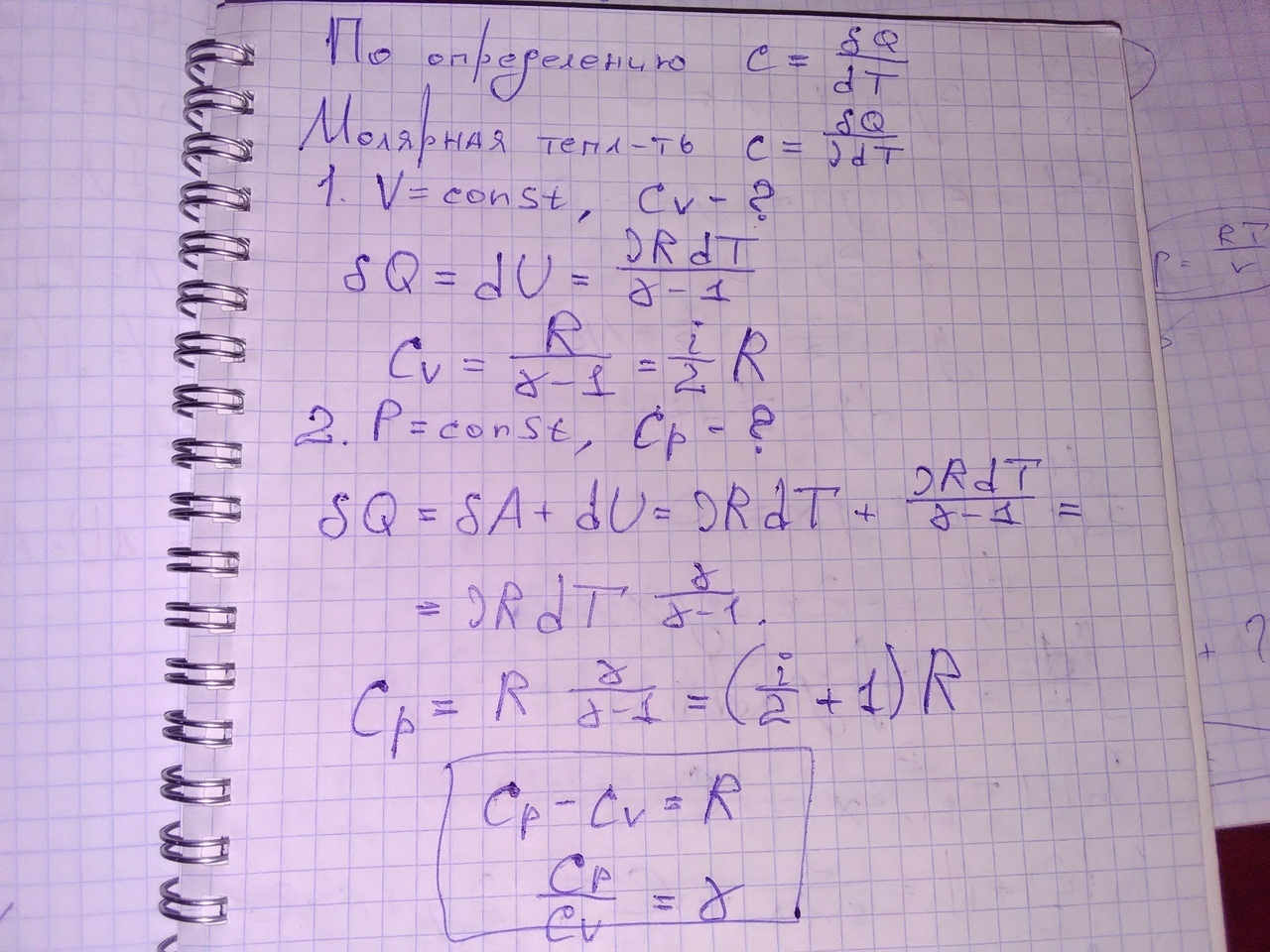 Cv = (i/2) * R = (5/2)*8,31 ≈ 20,78 Дж / K