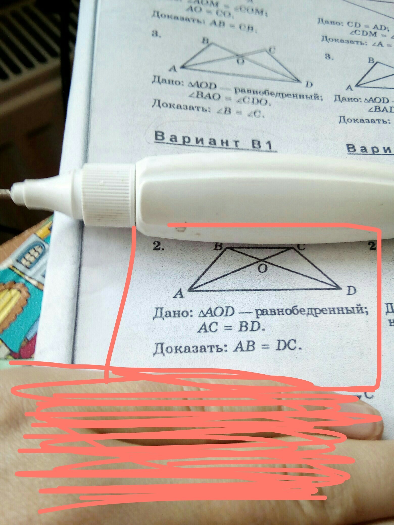 Если АС=ВD, а АО=ОD, значит ВО=ОС.
