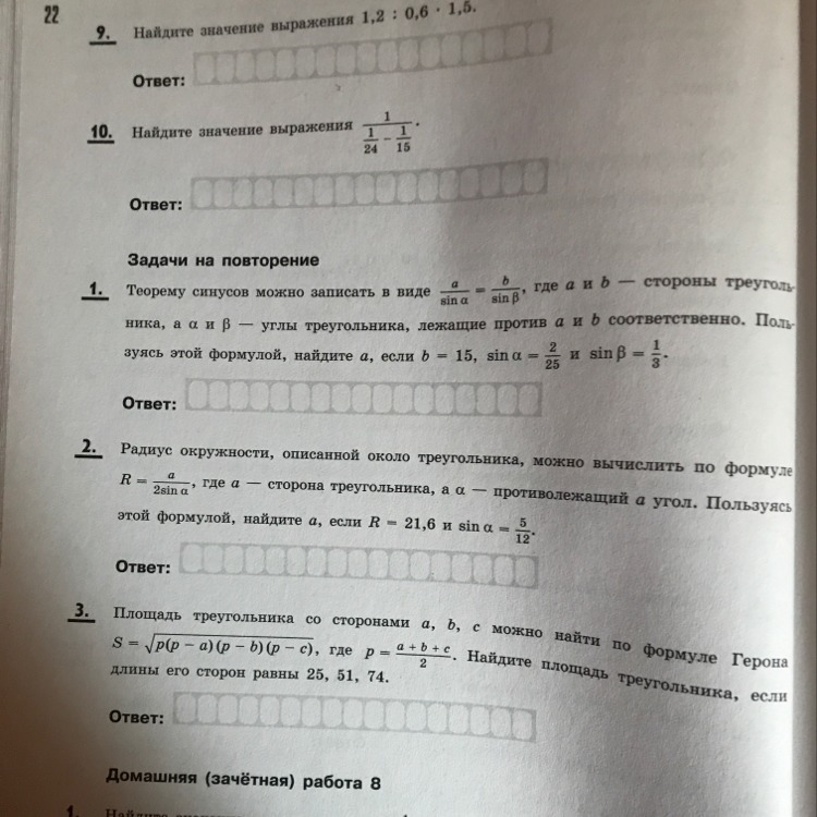 1) a = b*sina/sinb = 15*2/25 / 1/3 = 30/25 * 3 = 90/25 = 3,6