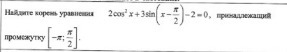 Найти корень уравнения 2*cos(x)^2+3*sin(x-pi/2)-2 =0 принадлежащий промежутку [-pi; pi/2].