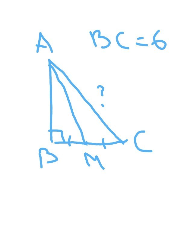 BM = 1/2 * BC = 1/2 * 6 = 3 (дм), т.к. AM - медиана. AM = 5 дм, угол ABM = 90°.