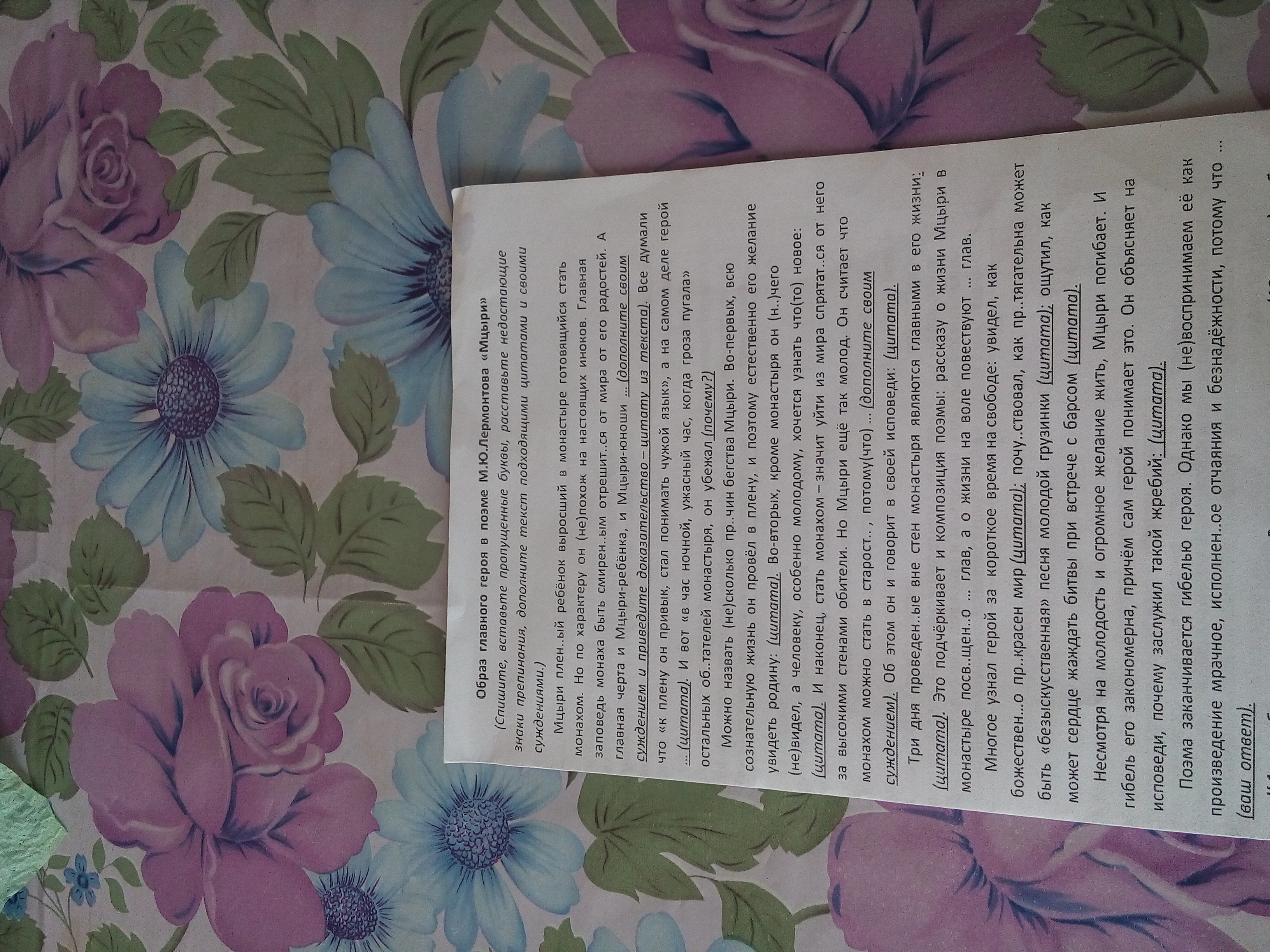 Мцыри - плеННый ребёнок , выросший в монастыре , готовящийся стать монахом. Но по характеру он не _ похож на настоящих иноков. Главная заповедь монаха - быть смиреННым , отрешиТЬся от мира , от его радостей. А главная черта и Мцыри-ребёнка, и Мцыри-юноши непокорность, свободолюбие:
