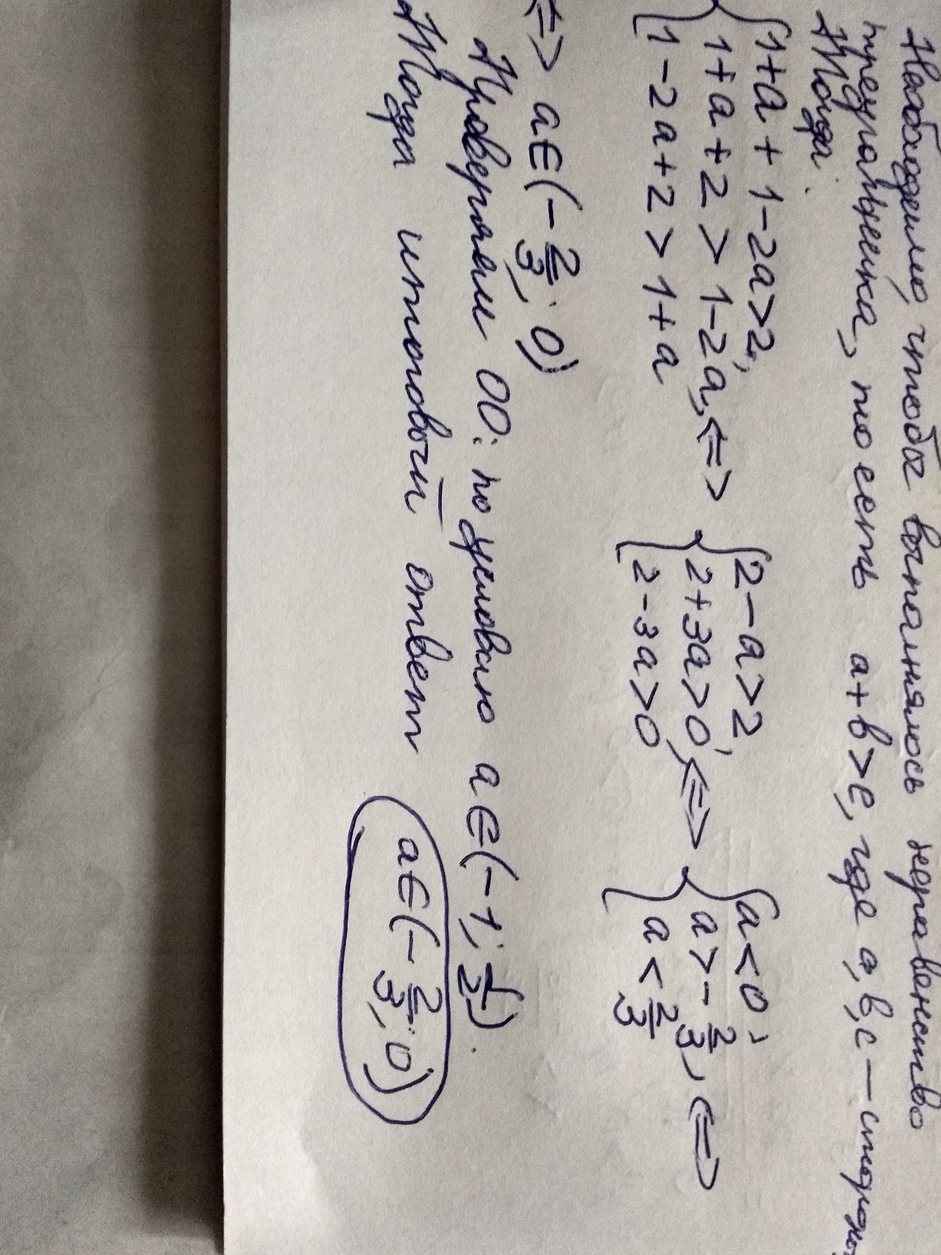 При каких значениях параметра a (-1 < a < ½) из трех отрезков с длинами 1 + a , 1 - 2a и 2 можно построить треугольник?